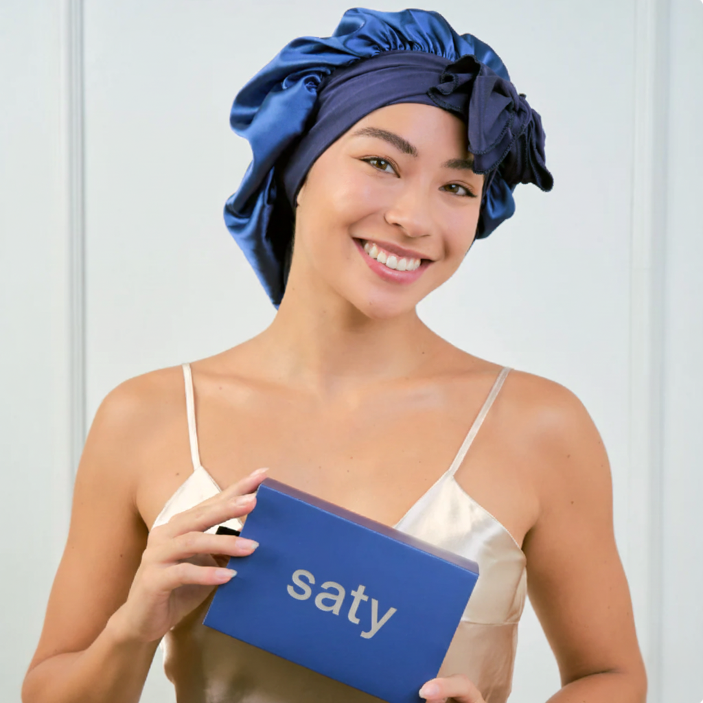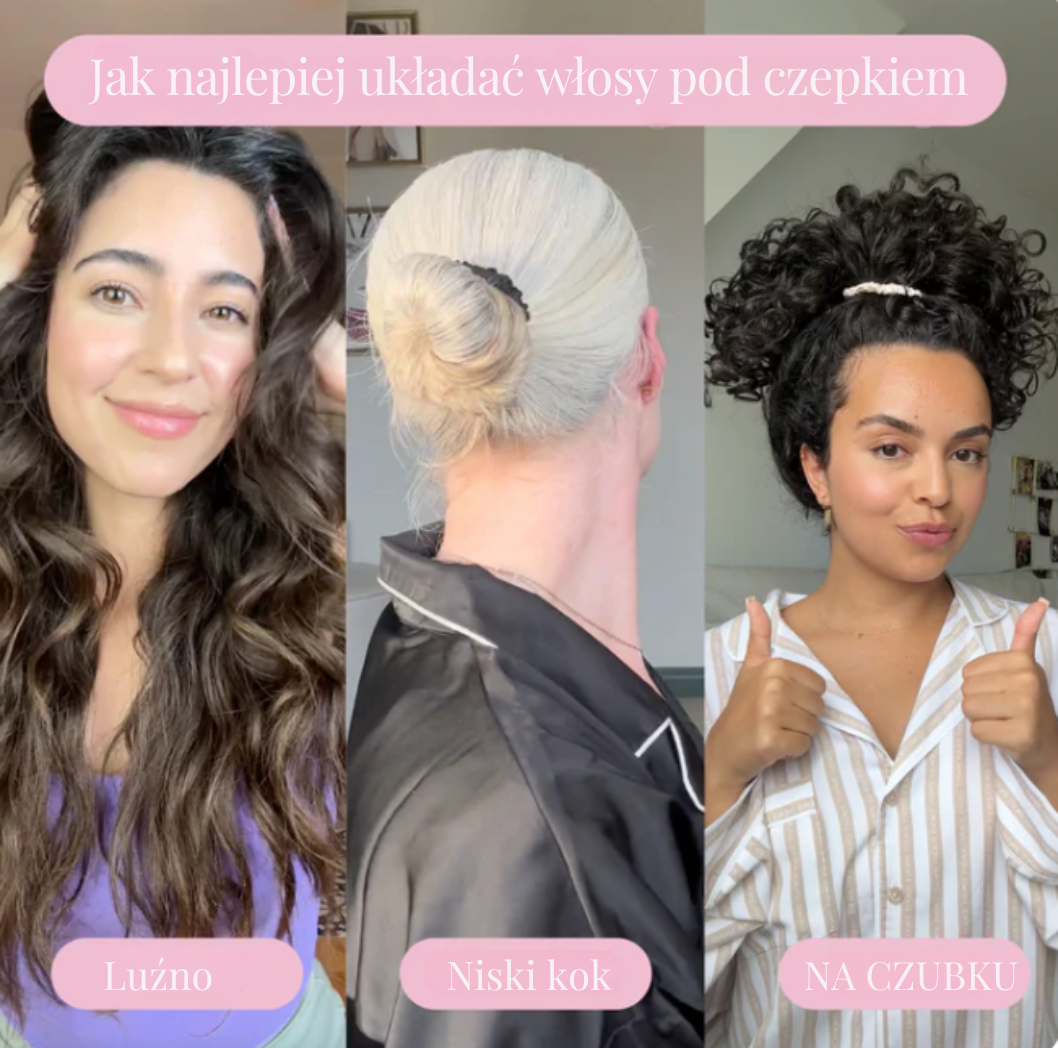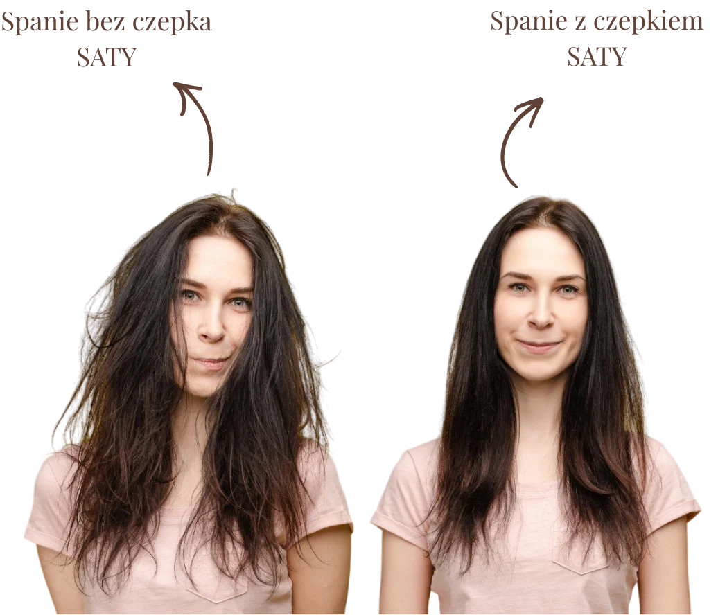 Satynowy czepek SATY minimalizuje tarcie, pozwalając włosom swobodnie