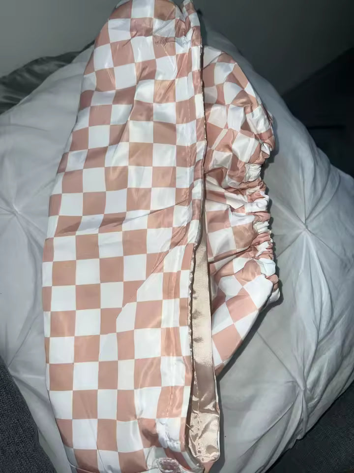 Jedwabista satyna delikatnie otula włosy, minimalizując tarcie i chroniąc fryzurę przed wilgocią.