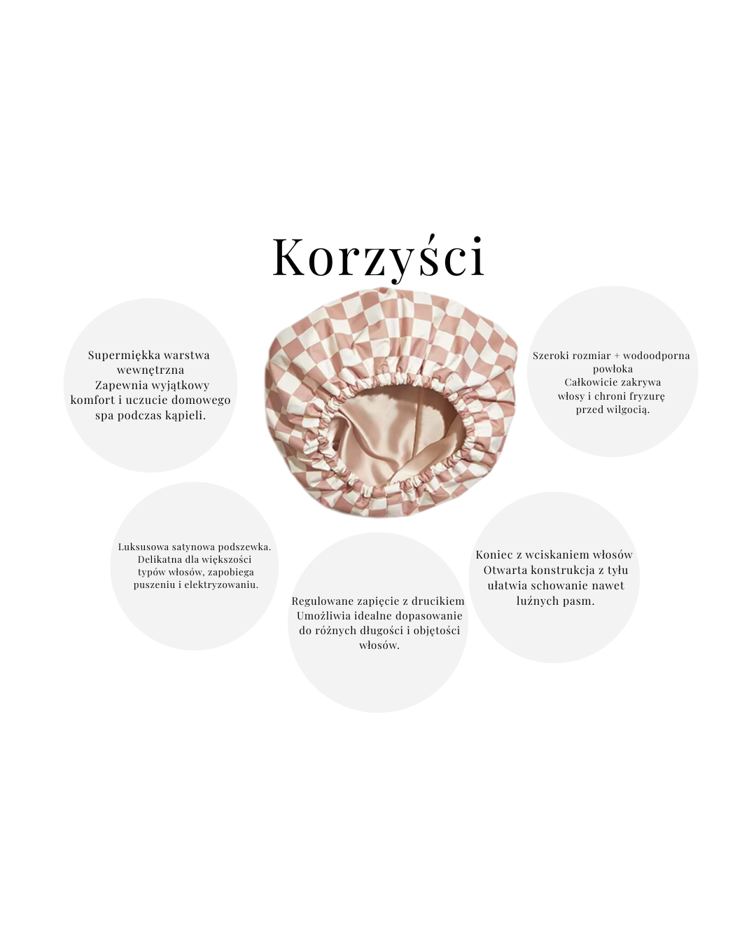 Czepek SATY jest dla każdej osoby, która chce chronić fryzurę przed wilgocią podczas kąpieli. Sprawdzi się przy włosach prostych, falowanych i kręconych, szczególnie jeśli nie myjesz włosów codziennie.